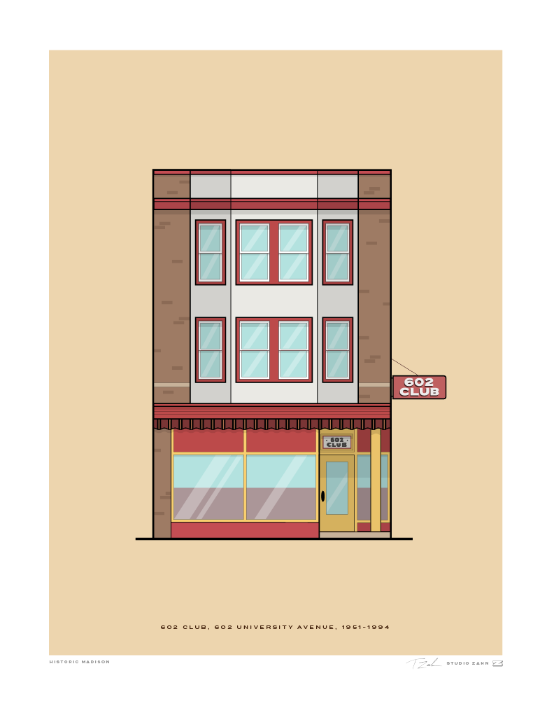 Art print of the landmark 602 Club ... "The Six", a haven for intellectuals, activists, scholars (home to the "Marxist Drinking Society") ... and a pioneer in LGBTQ history on the UW campus.
