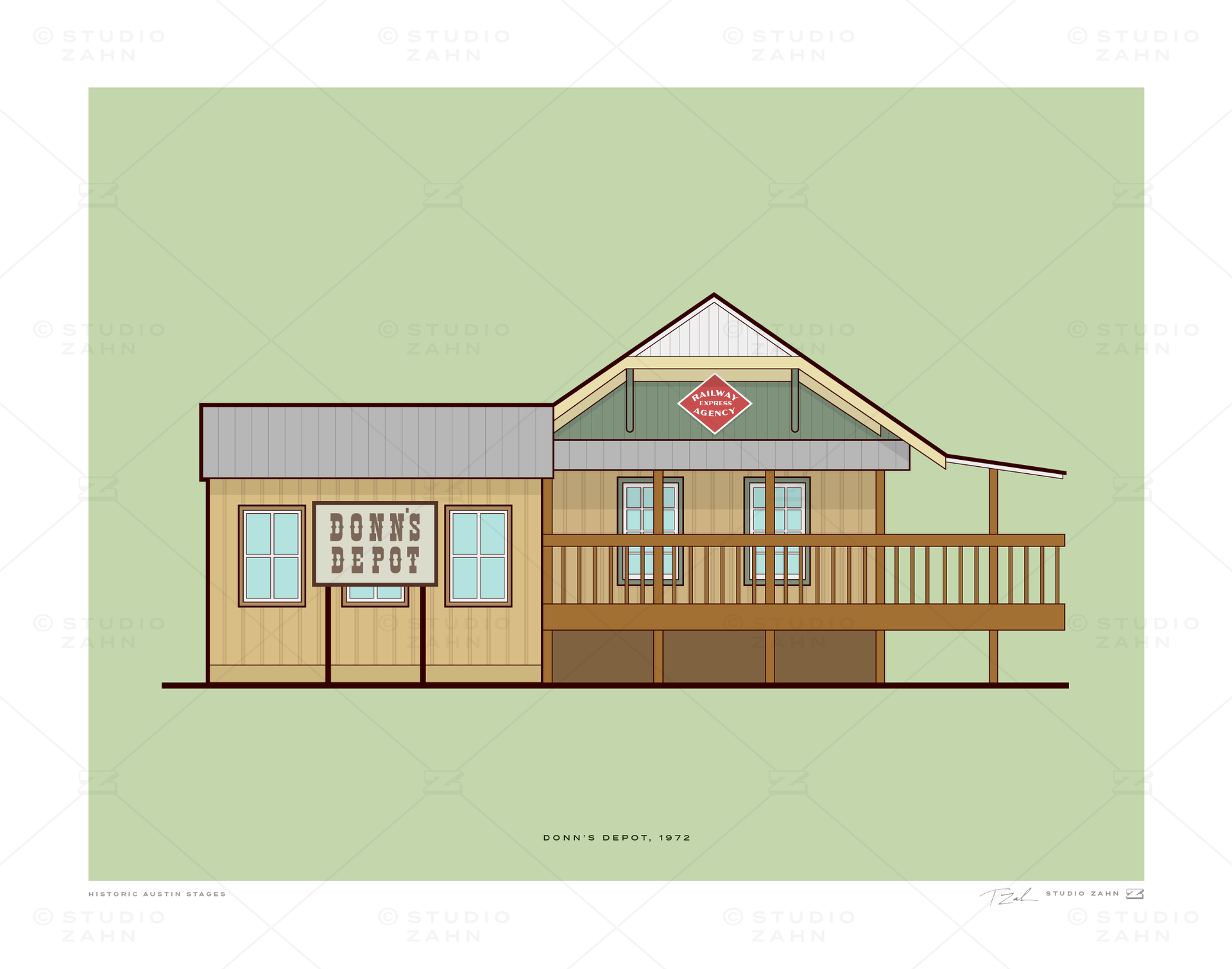 Art print of the beloved dive Donn's Depot, opened on 5th Street in 1972.