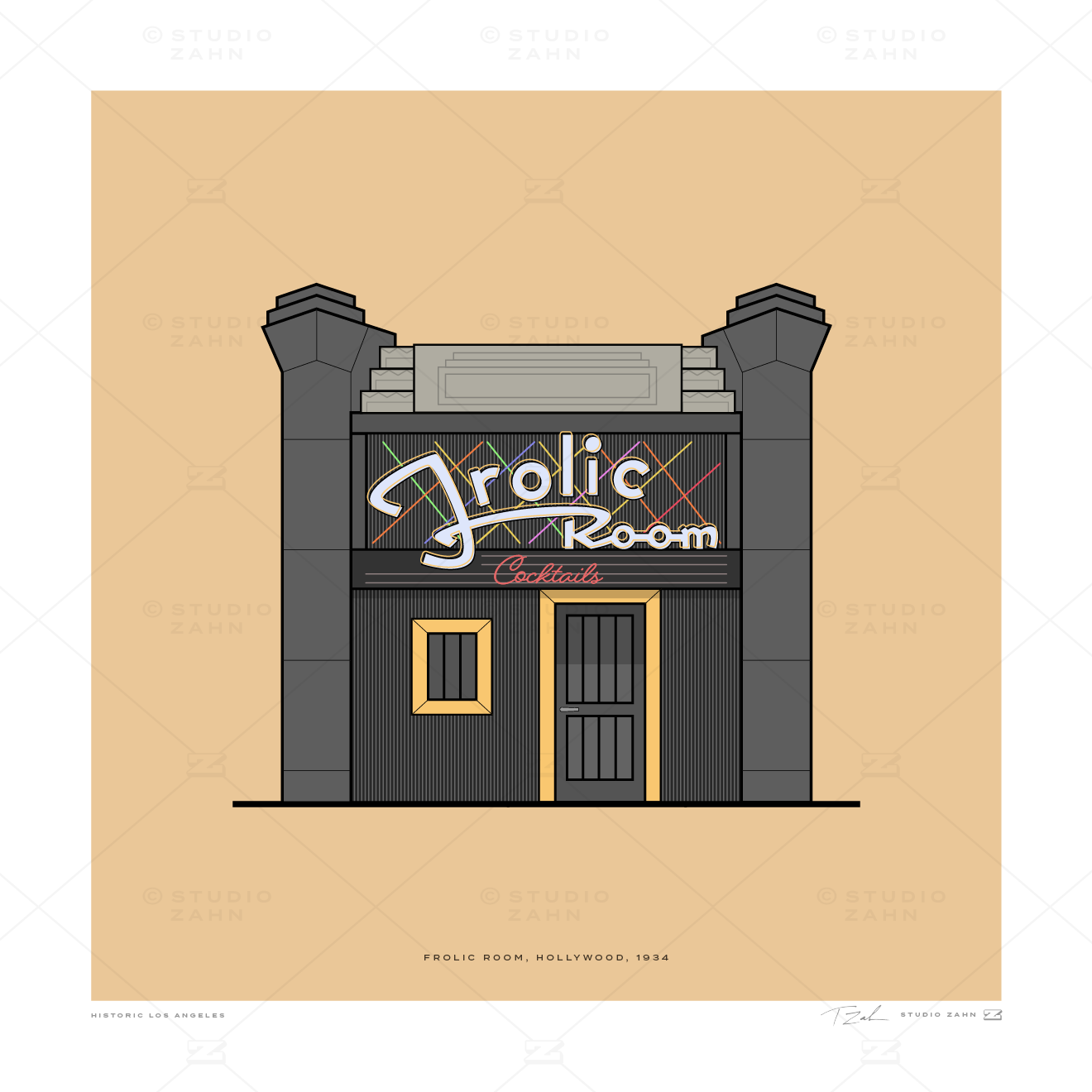 Art print of the Frolic Room, one of the legendary dives of old Hollywood ... opened as a speakeasy in the early '30s in the shadow of the Pantages Theater.