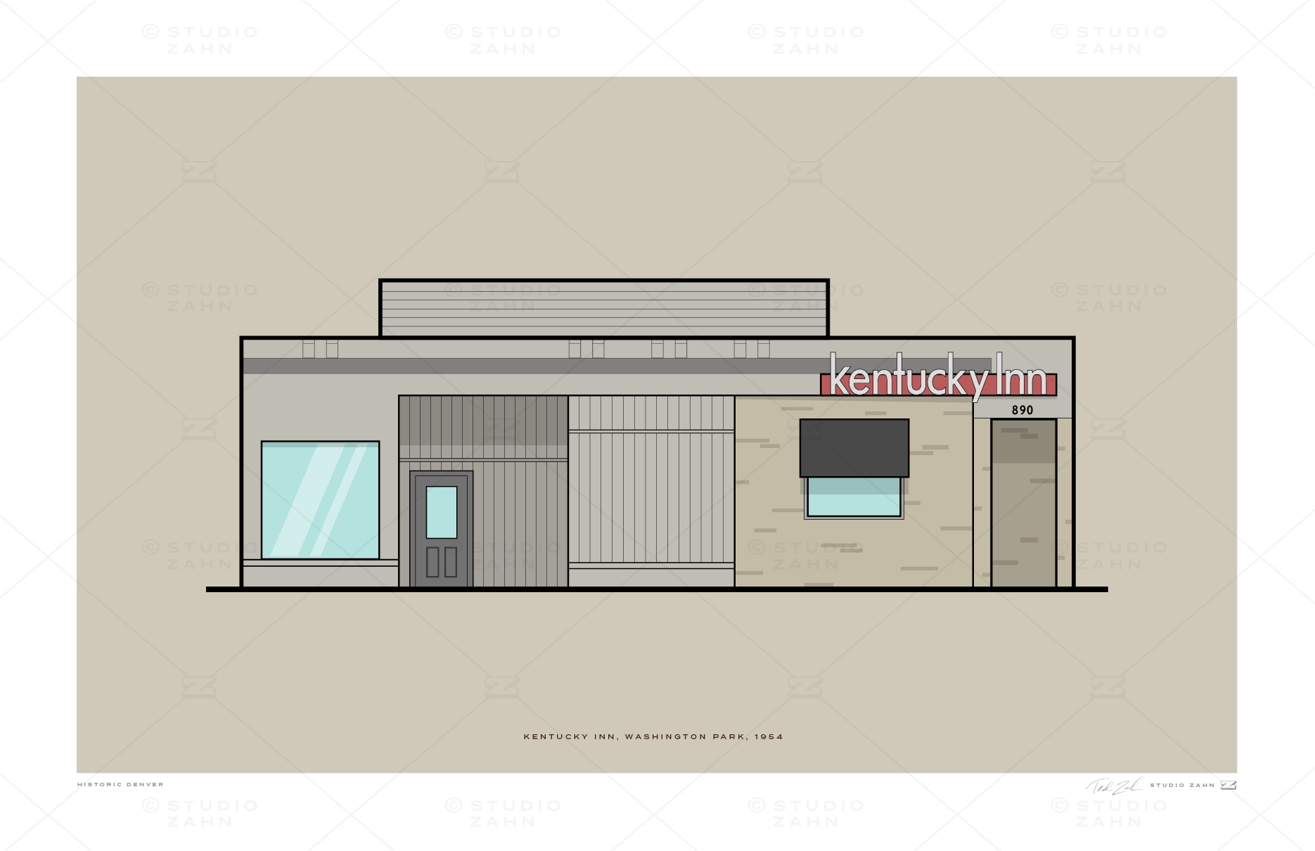 Art print of the Kentucky Inn, the venerable 70-year-old Wash Park West neighborhood dive ... and Green Bay Packer fan hangout.