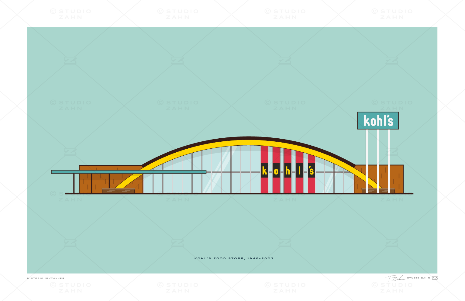 Art print of Kohl's Food Store, the midcentury marvel that spread through the upper Midwest during the 1950s, 60s, and 70s.