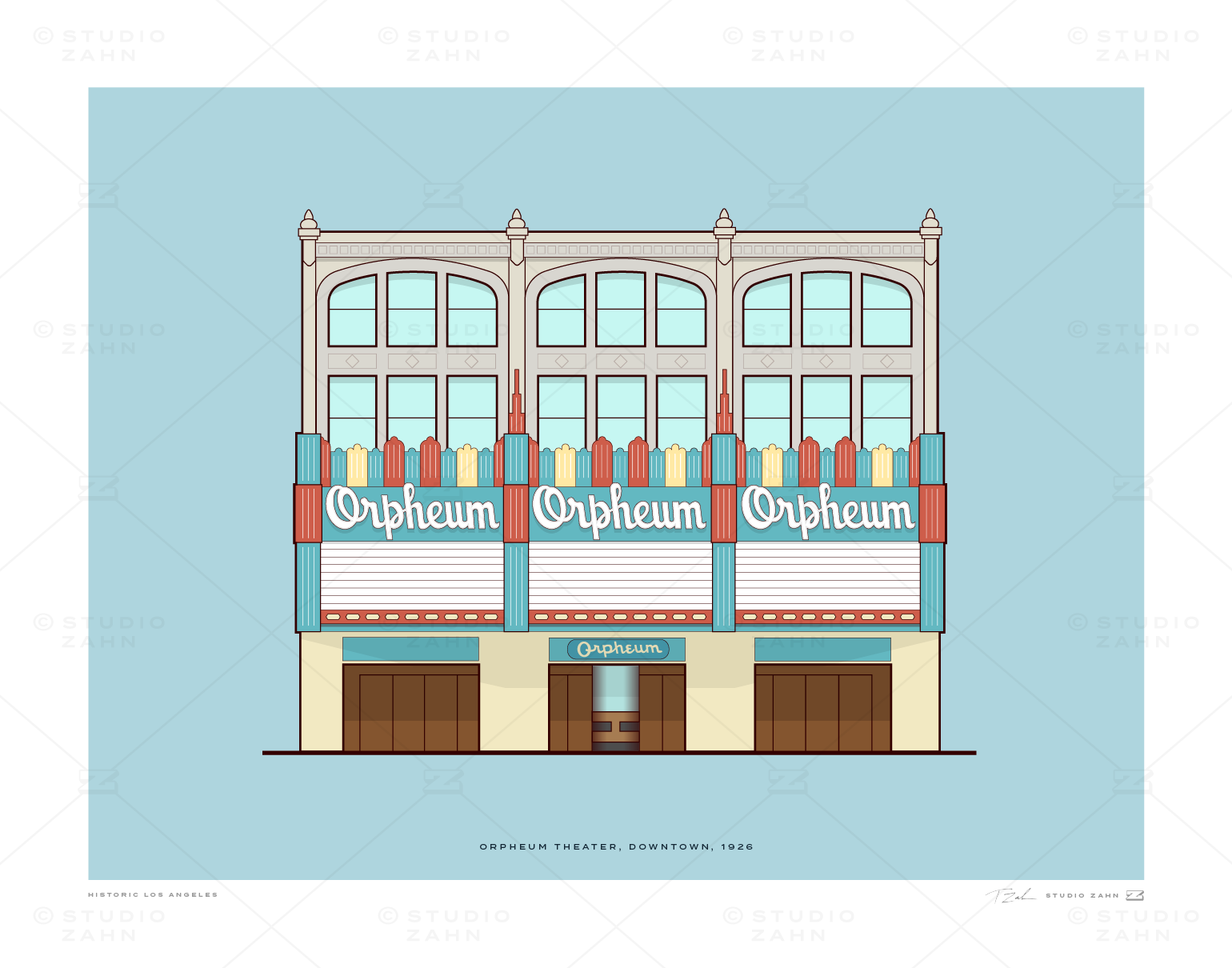 Art print of the Orpheum, opened on L.A.'s Broadway Theater row in 1926.