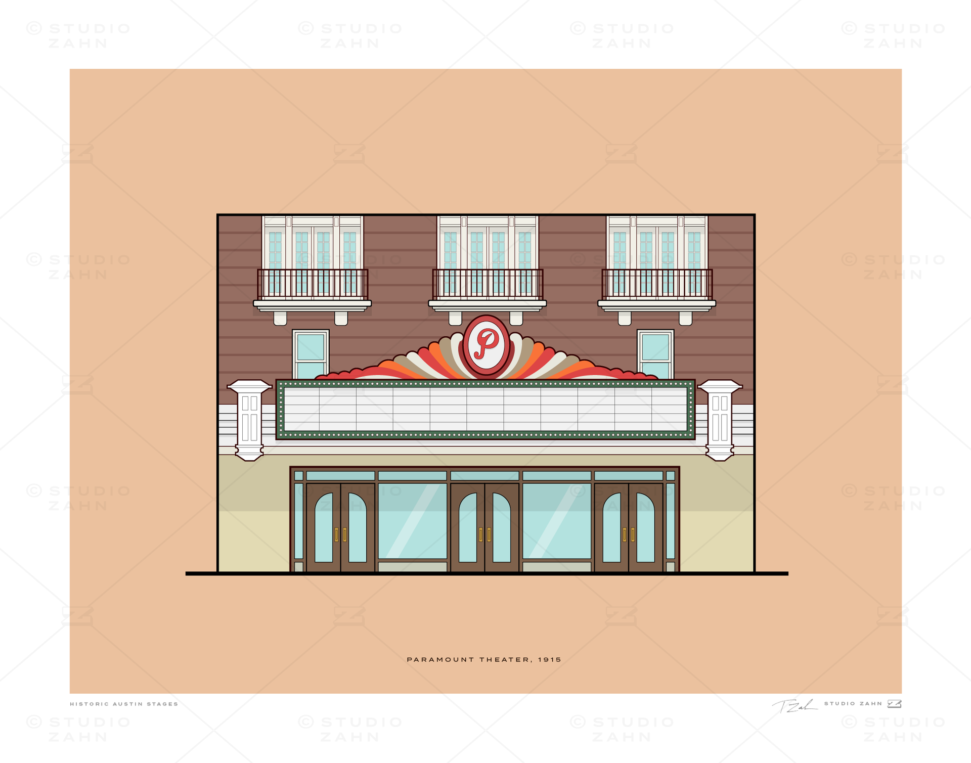 Art print of the legendary Paramount Theater, opened on Congress Avenue in 1915.