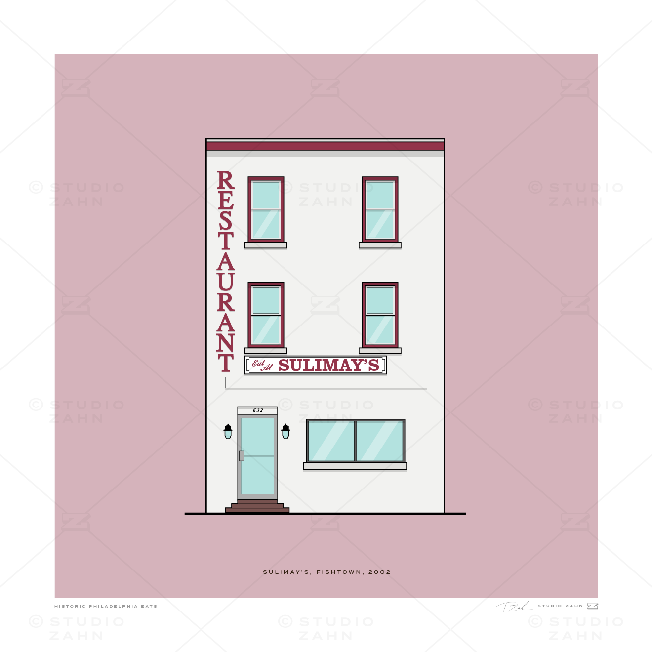 Art print of Sulimay's, the beloved Fishtown diner and community melting pot.