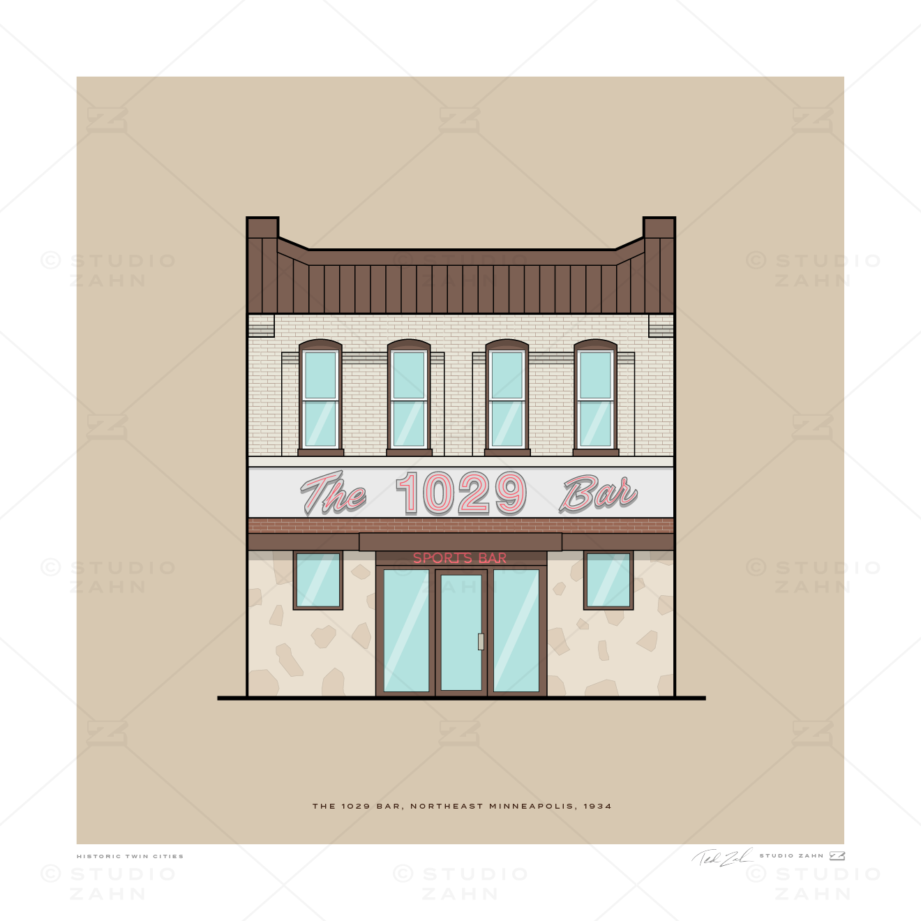 Art print of the 1029 Bar, the longtime Nordeast watering hole on the corner of Marshall and 11th since 1934.