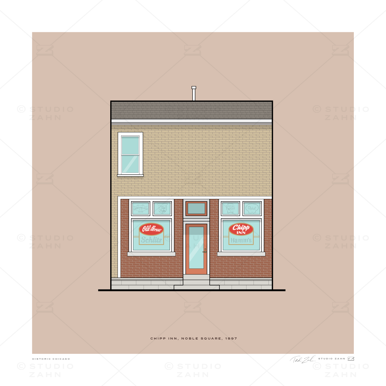 Art print of Chipp Inn, the friendly little neighborhood institution tucked away on the corner of Greenview and Fry since 1897.