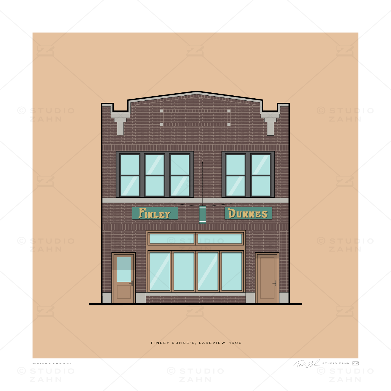 Art print of Finley Dunne's Tavern, the venerable Lakeview neighborhood hangout and sports bar named after Chicago Evening Post columnist Finley Peter Dunne.