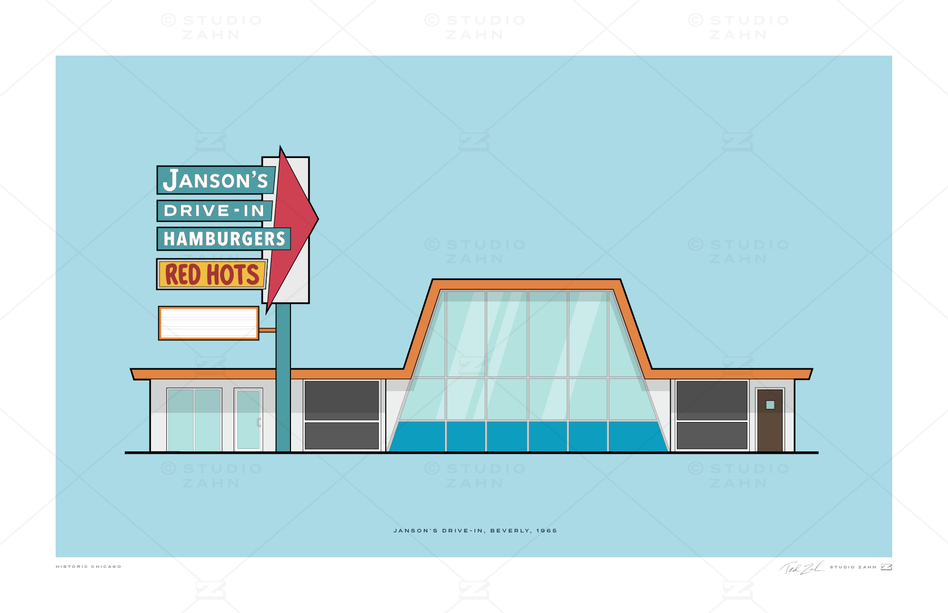 Art print of Janson's, the South Side icon serving dogs, Italian beef, and other classic family fare since 1960.