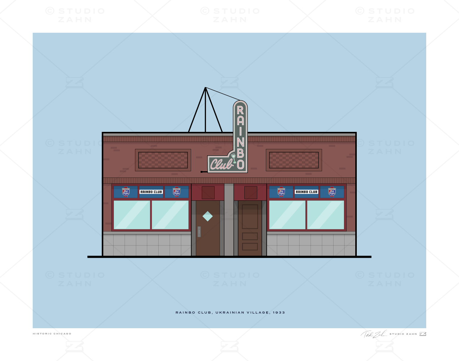 Art print of the Rainbo Club, the iconic Ukrainian Village / Wicker Park dive that dates back to 1933 — and back to full health after being lost for 14 months during the pandemic.