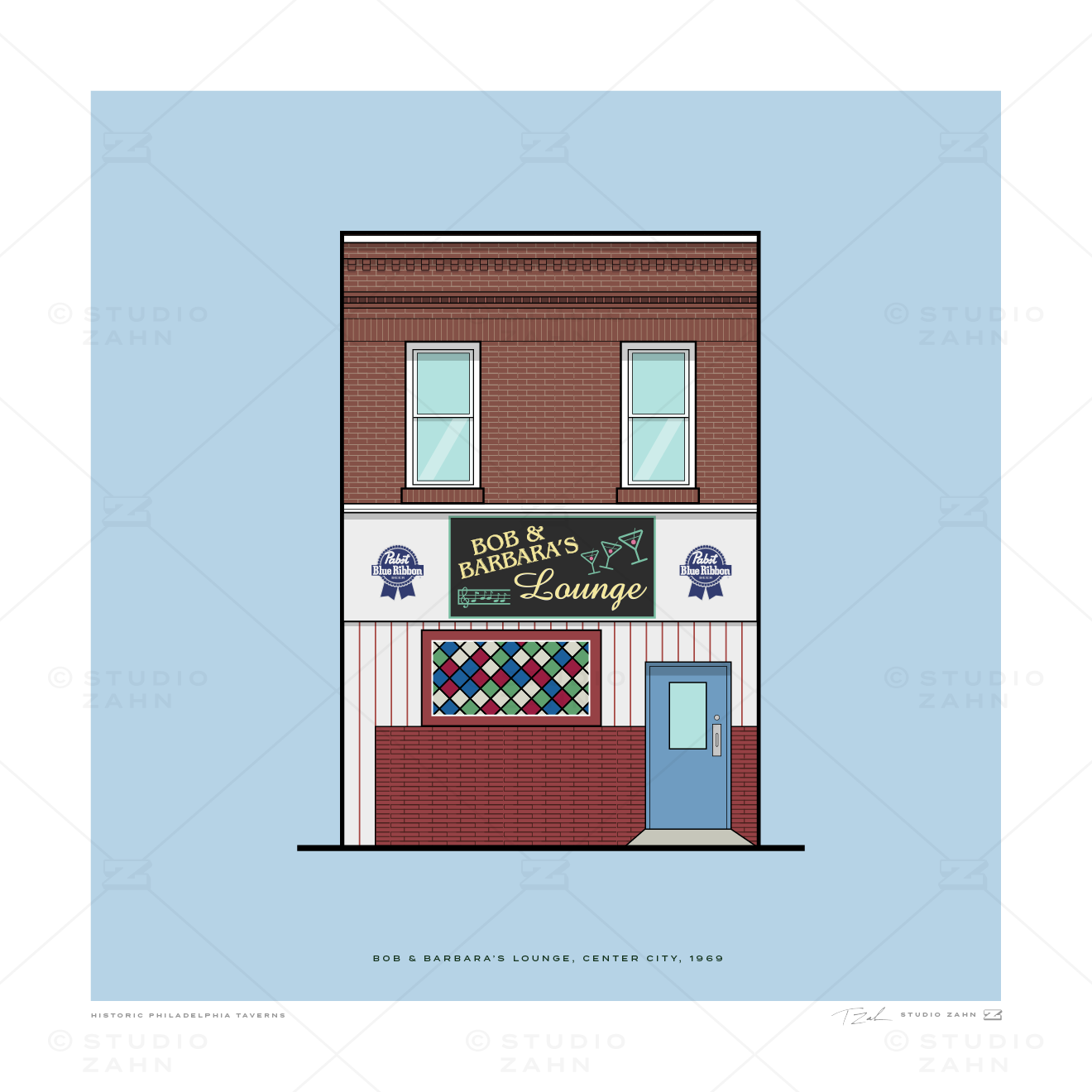 Art print of Bob & Barbara's Lounge, the beloved dive, home of The Special, and showcase for live music on South Street since 1969.