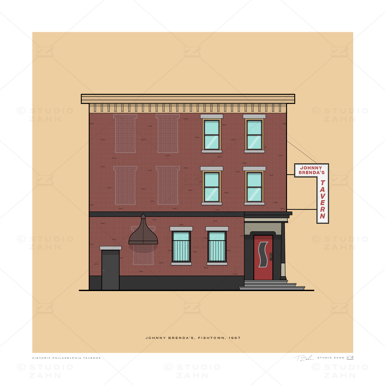 Art print of Johnny Brenda's, the iconic music venue, bar, and restaurant in the heart of Fishtown since 1967.