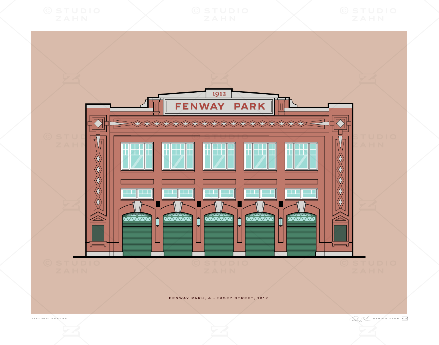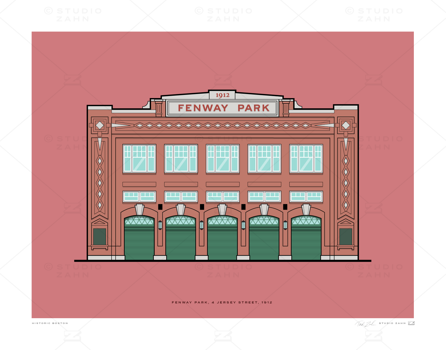 Art print of iconic Fenway Park, 100-year-old beacon of baseball history and home to legends like Williams, Doerr, Yastrzemski, Fisk, Rice, Nomar, Big Papi ... and so many more.