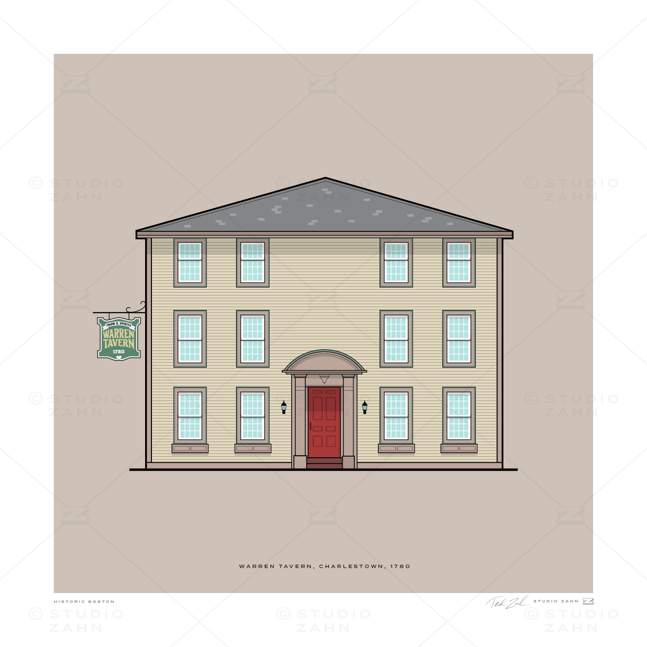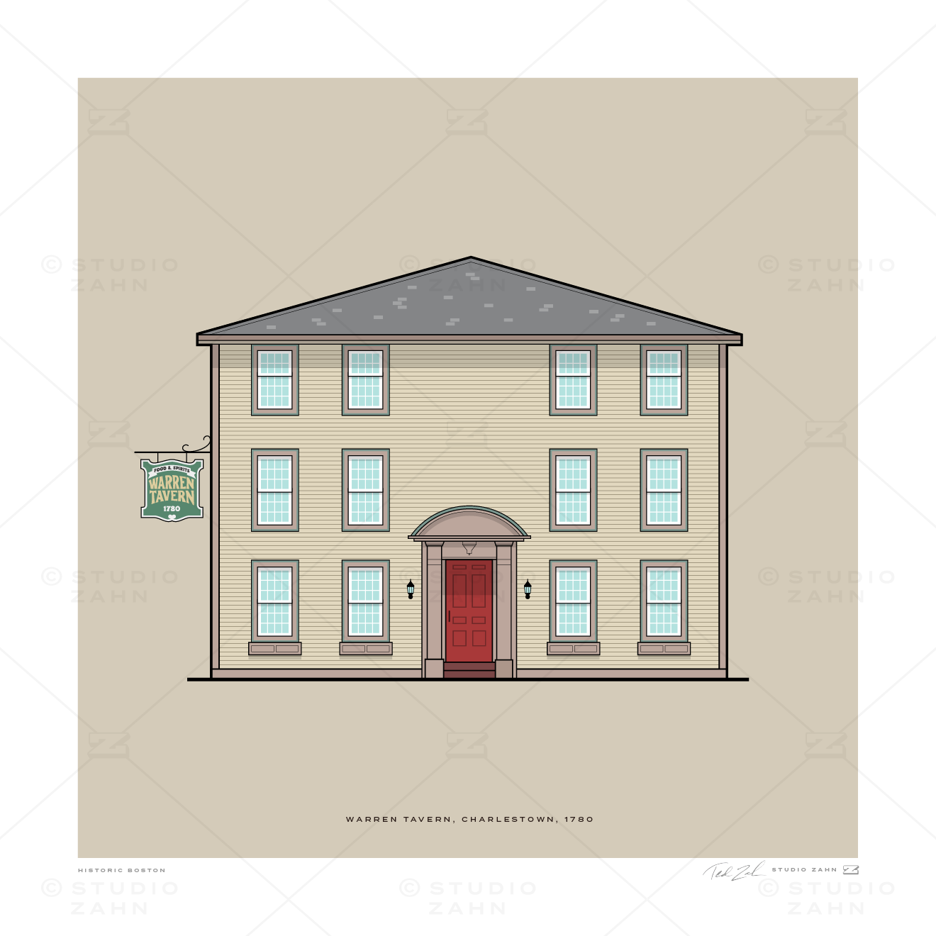 Art print of Warren Tavern, the oldest watering hole in Massachusetts, home to revolutionaries and everyday folks since 1780.