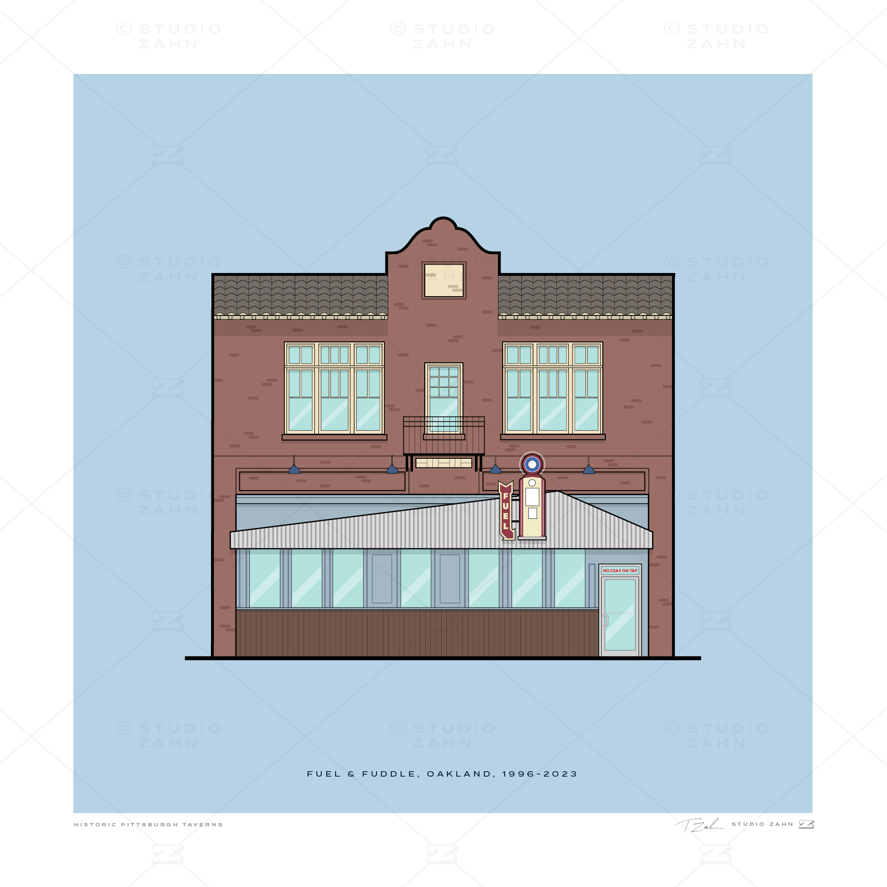 "No Crap on Tap" - This art print commemorates Fuel & Fuddle, the Oakland Avenue / University of Pittsburgh institution, that finally closed its doors in 2023 after a glorious 27-year run.