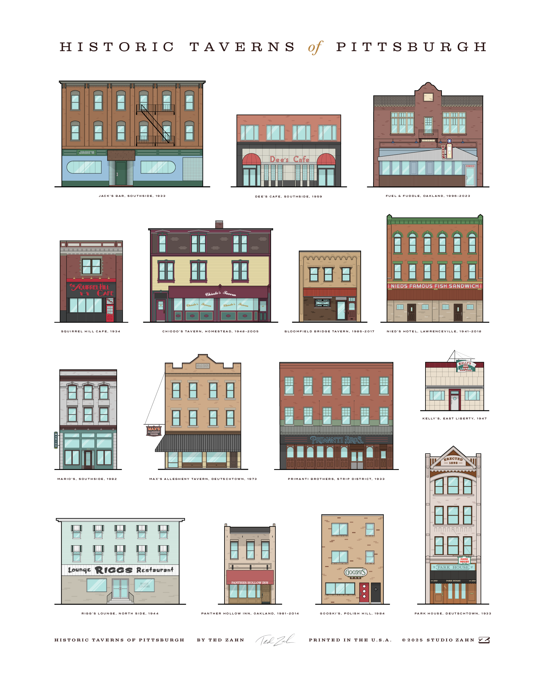 Historic Taverns of Pittsburgh Poster / 16" x 20"