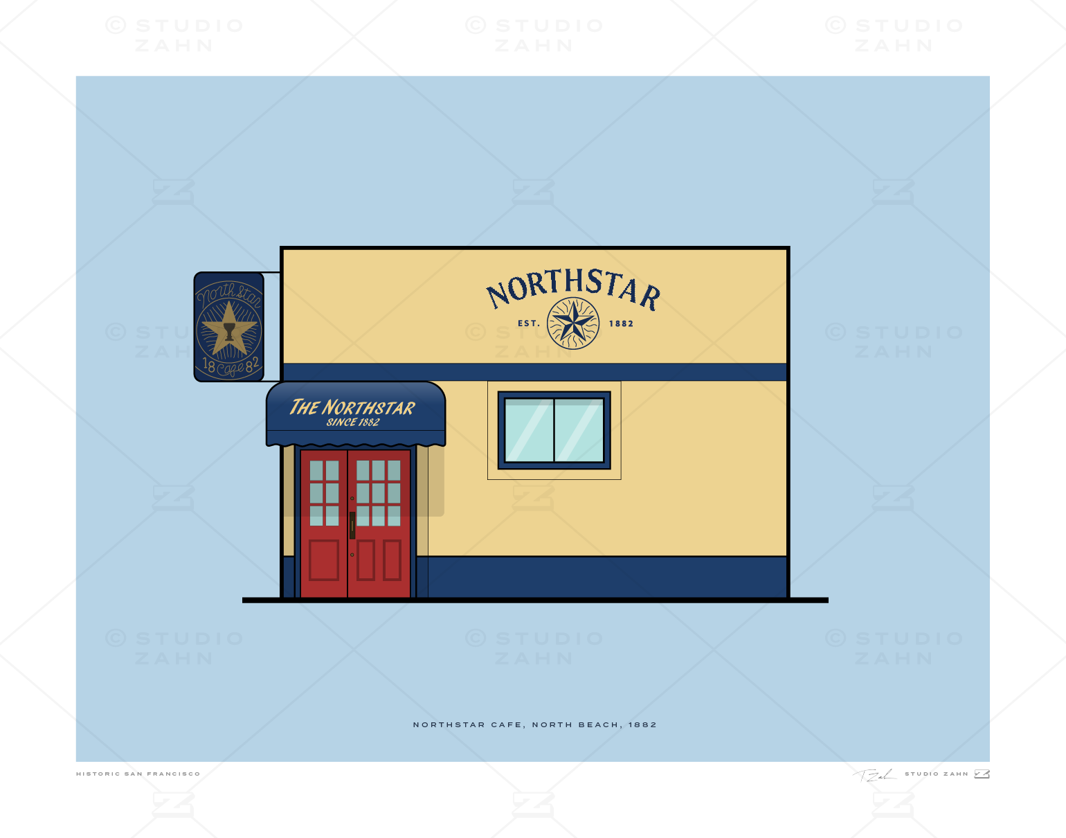 Art print of the NorthStar, the classic corner dive and 120-year-old North Beach institution. (Go Bills!)
