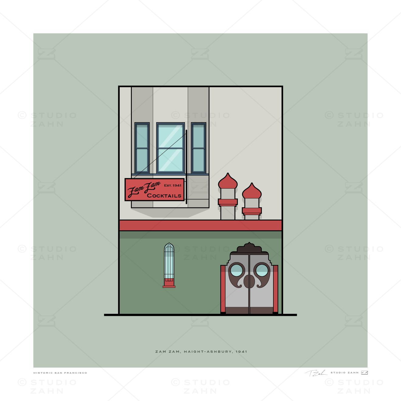 Art print of Zam Zam (or Aub Zam Zam if you wish), the little time capsule on Haight with the Persian flare and gin martinis since 1941.