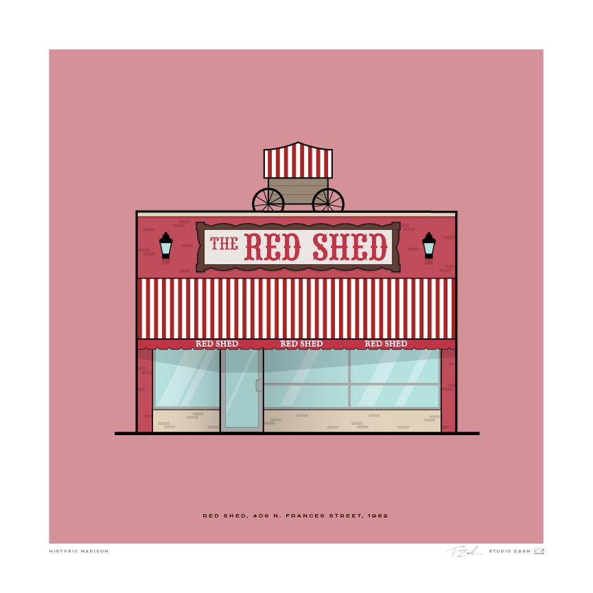 Art print of the Red Shed, which just concluded a 54-year run in its iconic Frances Street digs.