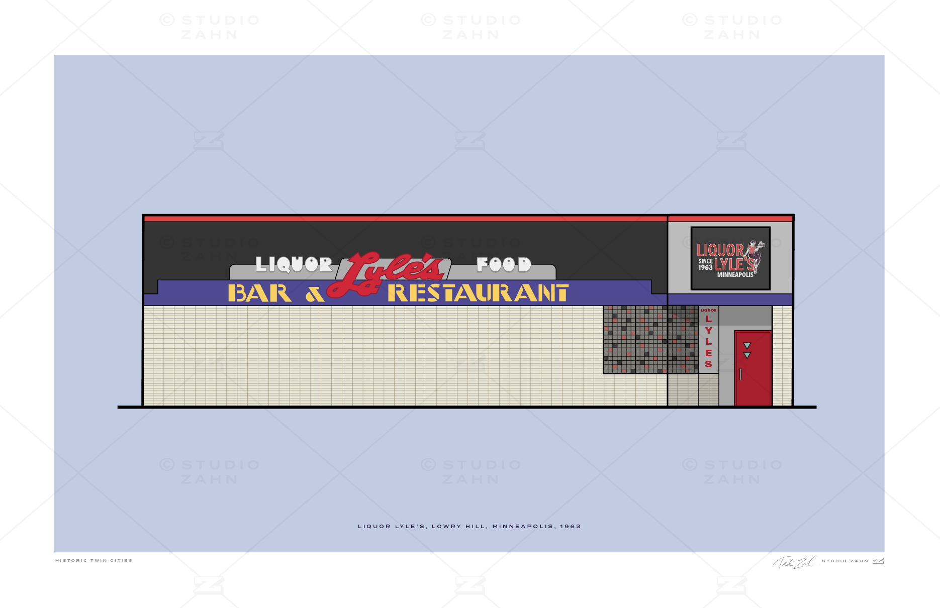 Art print of Liquor Lyles, the legendary Hennepin Avenue dive, lost in 2021 after a glorious 60 year run on Lowry Hill.